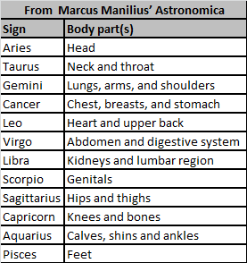 In astrology, each part of the body is ruled by a sign and planet. From Wikipedia: